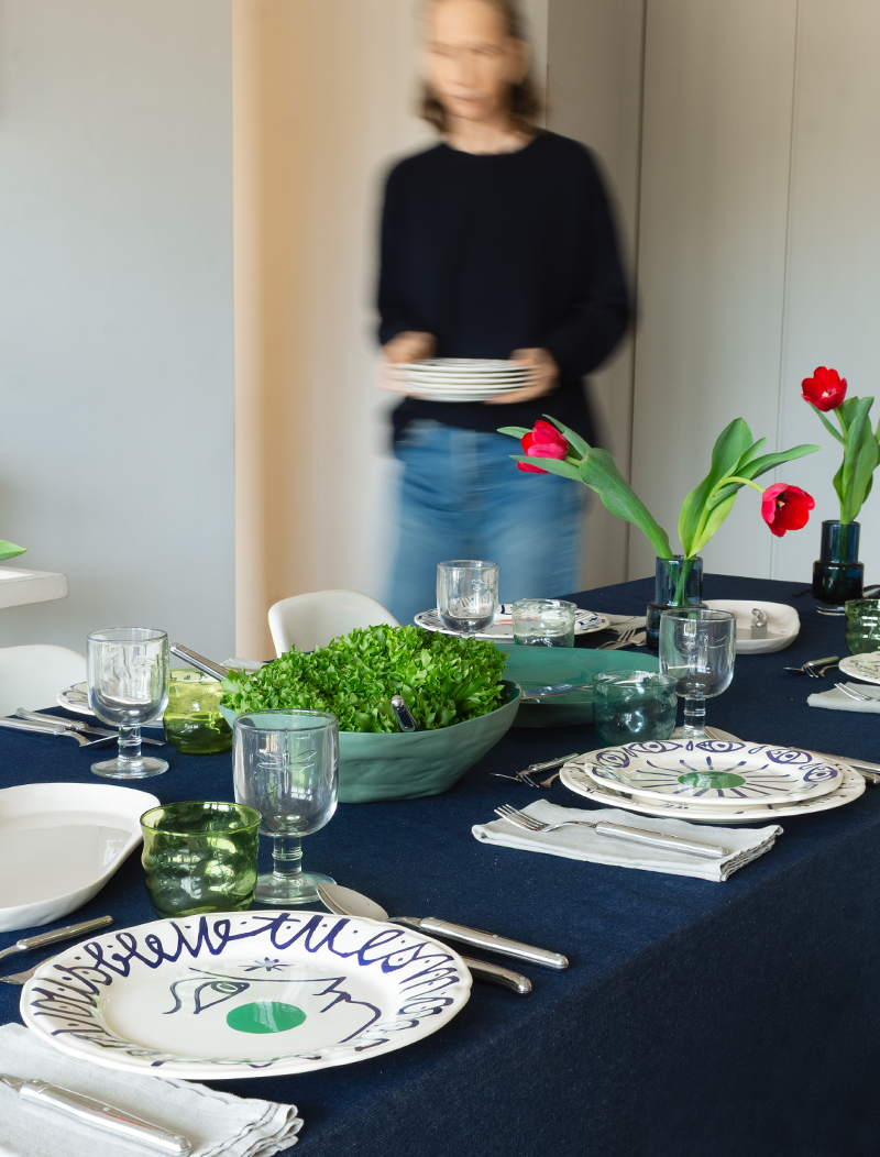 A collaboration between Gien and Jean-Charles de Castelbajac presents an exclusive, unique, and high-end dinner set for six people, available exclusively with us. Each plate features a different design, transforming the table into a work of art in itself.