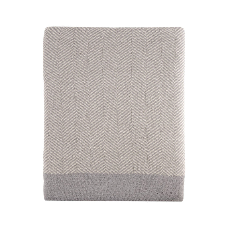 Knitted Cotton Fishbone Pattern Throw Grey