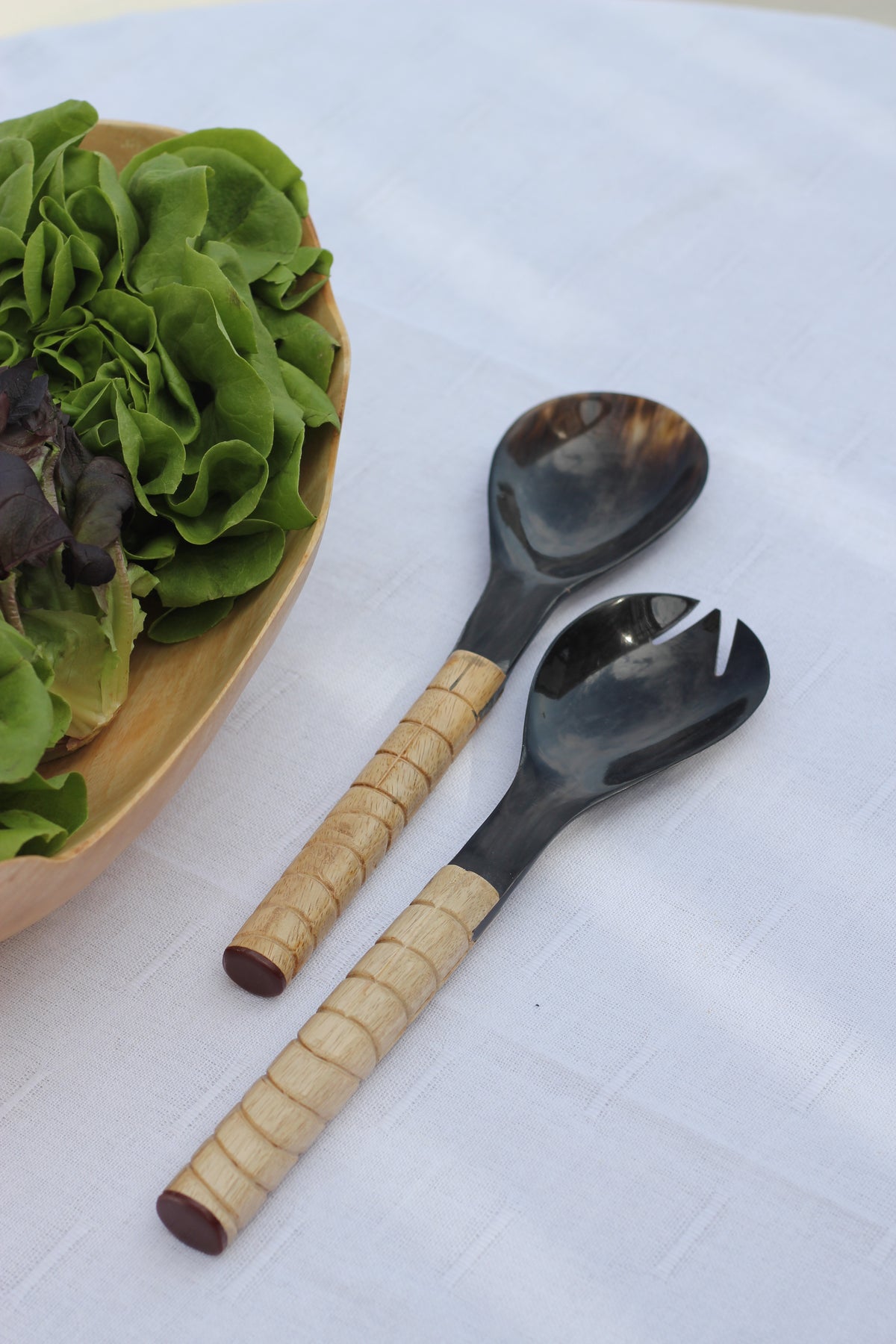 Horn Salad Servers With Wodden Handles